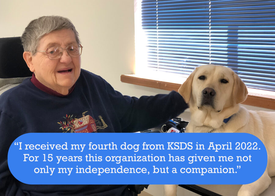 Recipients attend a two-week team training at the KSDS campus in Washington, Kansas, where they’ll learn to work with their dog in real-life scenarios.