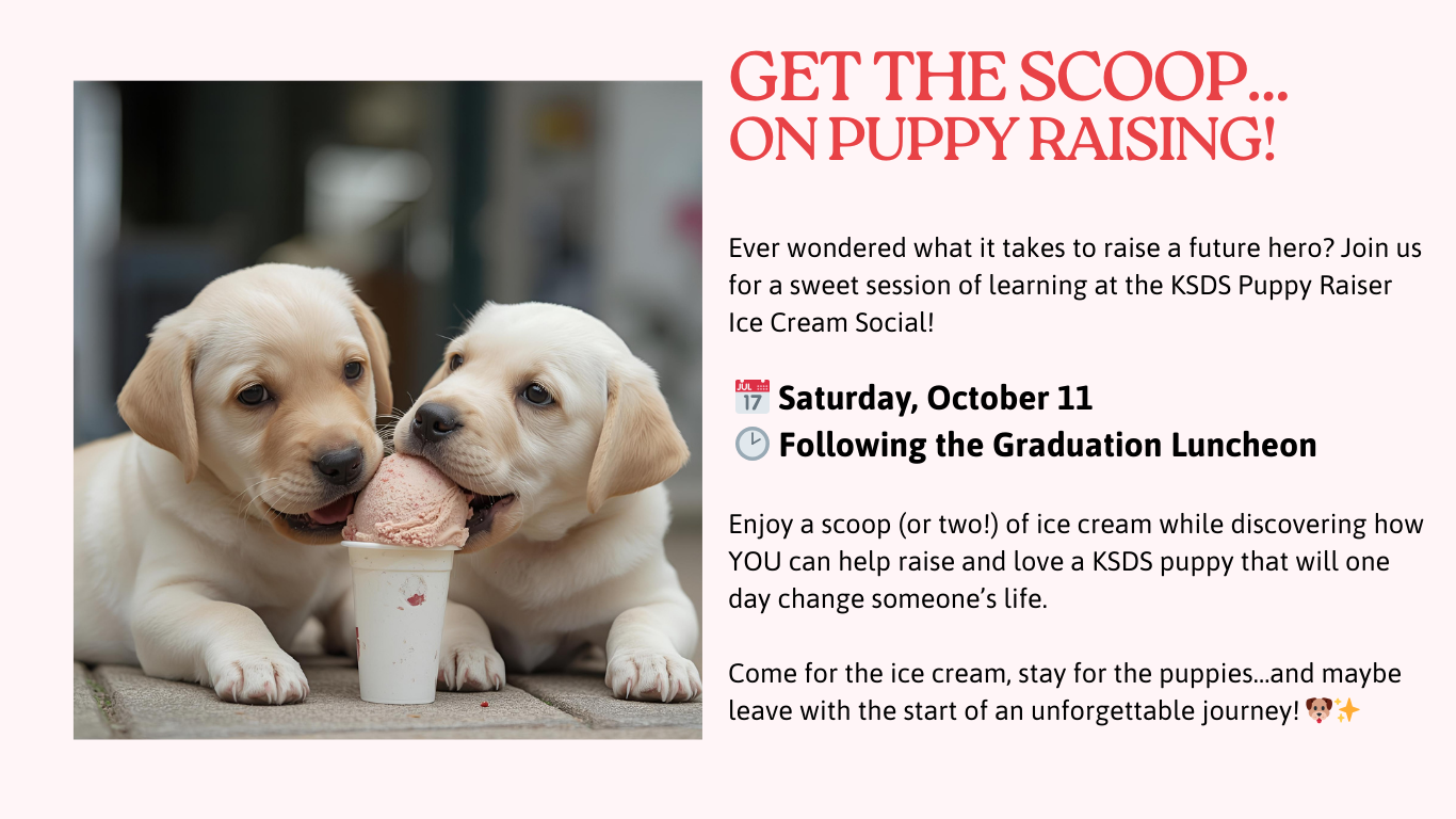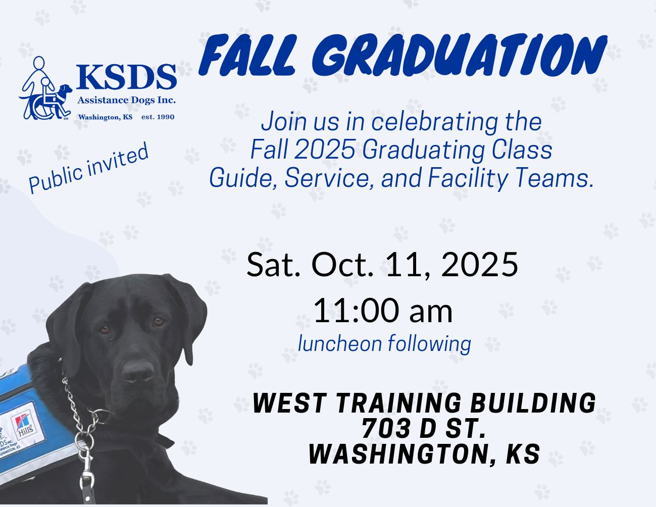 The mission of KSDS Assistance Dogs, Inc. is to provide professionally trained guide, service, and facility dogs for people in need of a canine partner to enhance their independence, to fully function in society and/or to enrich their professional career responsibilities with ongoing support of our trainers to ensure proficient working partnerships.